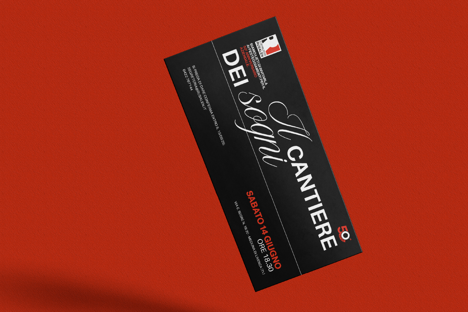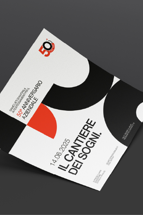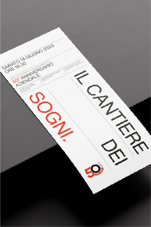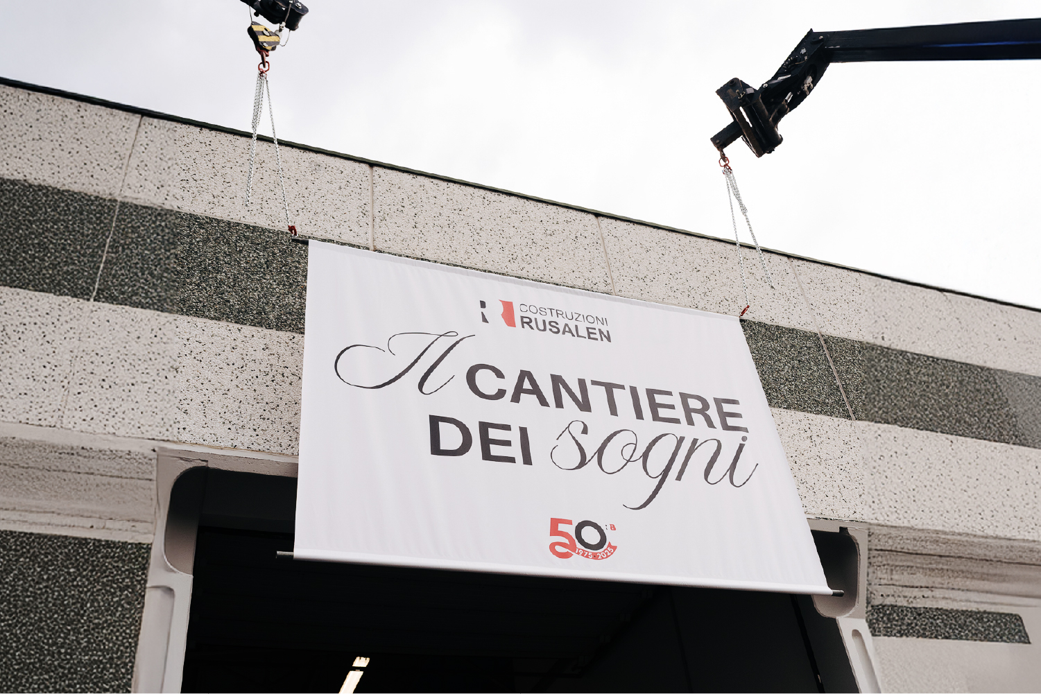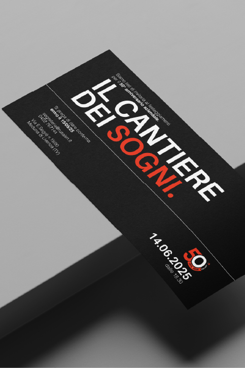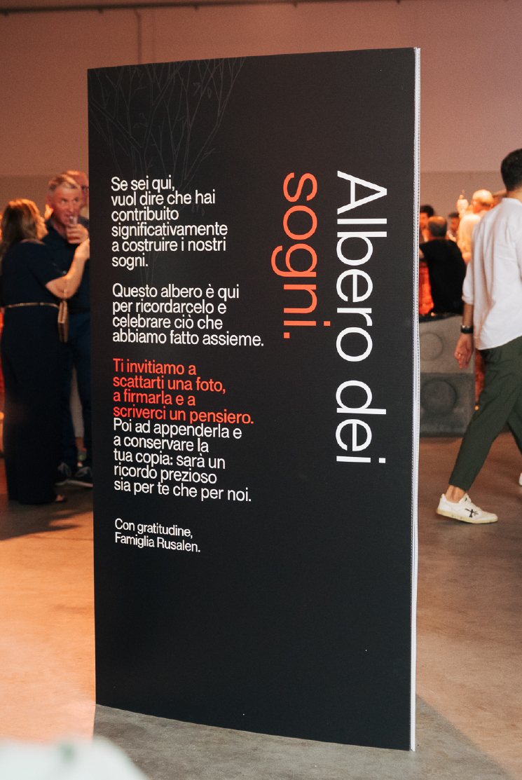 “Il Cantiere dei Sogni” è il nome dell’evento per il 50° anniversario di Rusalen Costruzioni a cui abbiamo lavorato assieme ad Eccezionale. Noi ci siamo occupati dell’immagine coordinata dell’evento e abbiamo curato, oltre a inviti, menu e cartellonistica, alcune delle sezioni interattive presenti: tra queste, l’albero dei sogni e la storia aziendale, raccontata attraverso un’imponente installazione all’ingresso.