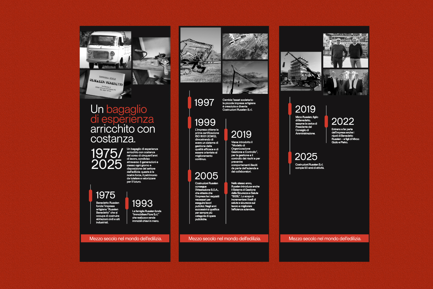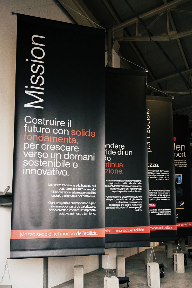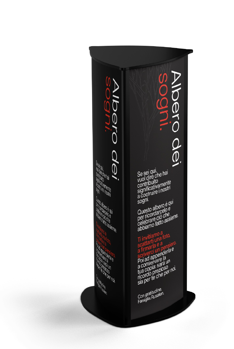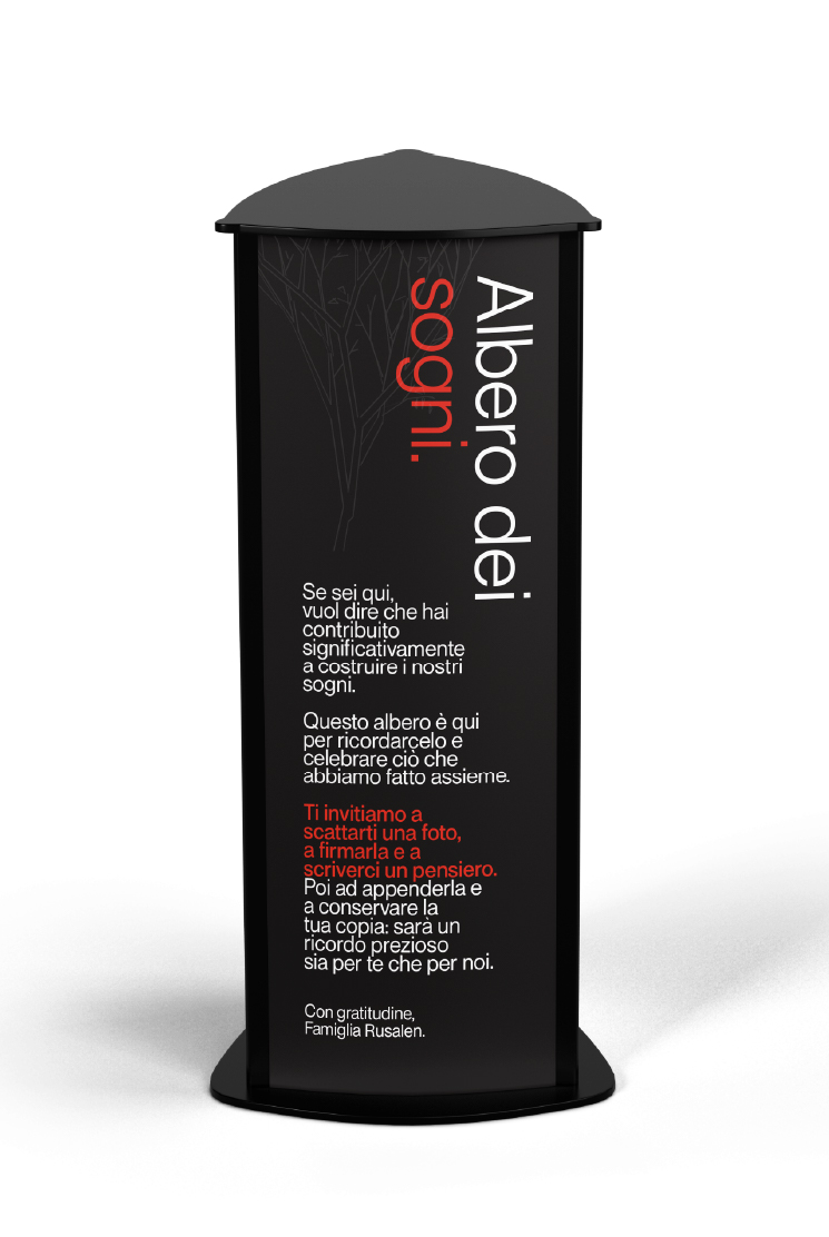 “Il Cantiere dei Sogni” è il nome dell’evento per il 50° anniversario di Rusalen Costruzioni a cui abbiamo lavorato assieme ad Eccezionale. Noi ci siamo occupati dell’immagine coordinata dell’evento e abbiamo curato, oltre a inviti, menu e cartellonistica, alcune delle sezioni interattive presenti: tra queste, l’albero dei sogni e la storia aziendale, raccontata attraverso un’imponente installazione all’ingresso.